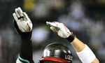 [OSEN=잠실, 조은정 기자]7일 오후 서울 잠실구장에서 ‘2025 신한 SOL Bank KBO리그’ LG 트윈스와 두산 베어스의 경기가 열렸다.LG는 송승기, 두산은 곽빈을 선발로 내세웠다.8회말 2사 1루 LG 신민재가 안타를 날린 뒤 세리머니를 하고