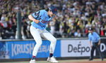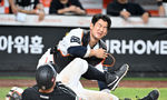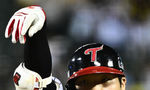 [OSEN=잠실, 조은정 기자]7일 오후 서울 잠실구장에서 ‘2025 신한 SOL Bank KBO리그’ LG 트윈스와 두산 베어스의 경기가 열렸다.LG는 송승기, 두산은 곽빈을 선발로 내세웠다.7회말 1사 1루 LG 문보경이 안타를 날린 뒤 세리머니를 하고