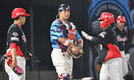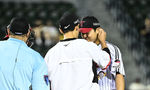 [OSEN=잠실, 조은정 기자]7일 오후 서울 잠실구장에서 ‘2025 신한 SOL Bank KBO리그’ LG 트윈스와 두산 베어스의 경기가 열렸다.LG는 송승기, 두산은 곽빈을 선발로 내세웠다.5회초 2사 1루가 되자 코칭스태프가 마운드에 올라 송승기