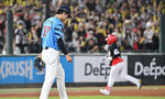 [OSEN=잠실, 조은정 기자]7일 오후 서울 잠실구장에서 ‘2025 신한 SOL Bank KBO리그’ LG 트윈스와 두산 베어스의 경기가 열렸다.LG는 송승기, 두산은 곽빈을 선발로 내세웠다.4회말 2사 만루에서 두산 곽빈이 LG 신민재에게 역전 싹쓸