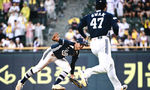 [OSEN=잠실, 조은정 기자]7일 오후 서울 잠실구장에서 ‘2025 신한 SOL Bank KBO리그’ LG 트윈스와 두산 베어스의 경기가 열렸다.LG는 송승기, 두산은 곽빈을 선발로 내세웠다.2회초 2사 1,2루 두산 조성환 감독대행이 김민석의 우익선