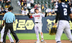 [OSEN=잠실, 조은정 기자]7일 오후 서울 잠실구장에서 ‘2025 신한 SOL Bank KBO리그’ LG 트윈스와 두산 베어스의 경기가 열렸다.LG는 송승기, 두산은 곽빈을 선발로 내세웠다.3회말 2사 LG 오스틴이 안타를 날린 뒤 세리머니를 하고 있