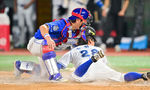 [OSEN=수원, 박준형 기자] 9일 오후 수원 KT위즈파크에서 ‘2025 신한 SOL BANK KBO리그’ KT 위즈와 삼성 라이온즈의 경기가 진행됐다.이날 KT는 헤이수스를 , 삼성은 가라비토를 선발투수로 내세웠다.8회말 1사 1루 KT 장성우의 2루타때
