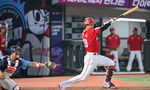 [OSEN=잠실, 조은정 기자]10일 오후 서울 잠실구장에서 ‘2025 신한 SOL Bank KBO리그’ LG 트윈스와 한화 이글스의 경기가 열렸다.LG는 손주영, 한화는 문동주를 선발로 내세웠다.5회말 1사 LG 이주헌이 안타를 날리고 있다. 2025.08.10 /cej@