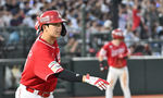 [OSEN=잠실, 조은정 기자]10일 오후 서울 잠실구장에서 ‘2025 신한 SOL Bank KBO리그’ LG 트윈스와 한화 이글스의 경기가 열렸다.LG는 손주영, 한화는 문동주를 선발로 내세웠다.5회초 1사 2루 한화 손아섭이 1타점 2루타를 날린 뒤 세리