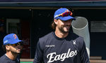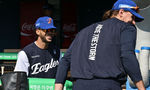 [OSEN=잠실, 조은정 기자]10일 오후 서울 잠실구장에서 ‘2025 신한 SOL Bank KBO리그’ LG 트윈스와 한화 이글스의 경기가 열린다.LG는 손주영, 한화는 문동주를 선발로 내세웠다.한화 와이스가 리베라토에게 장난을 친 후 도망가고 있