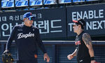 [OSEN=잠실, 조은정 기자]10일 오후 서울 잠실구장에서 ‘2025 신한 SOL Bank KBO리그’ LG 트윈스와 한화 이글스의 경기가 열린다.LG는 손주영, 한화는 문동주를 선발로 내세웠다.한화 이진영, 이원석이 훈련을 위해 그라운드에 나서고