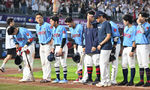 [OSEN=부산, 이석우 기자] 10일 부산 사직야구장에서 2025 신한 SOL 뱅크 KBO 리그 롯데 자이언츠와 SSG 랜더스의 경기가 열렸다. 홈팀 롯데는 박세웅이, 방문팀 SSG는 김건우가 선발 출전했다.롯데 자이언츠 박세웅과 선수들이 SSG 랜더