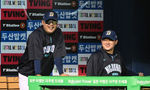 [OSEN=잠실, 지형준 기자] 12일 서울 잠실구장에서 ‘2025 신한 SOL Bank KBO리그’ 두산 베어스와 NC 다이노스의 경기가 열렸다.두산은 콜어빈, NC는 김녹원이 선발로 나섰다.7회말 두산 조성환 감독대행이 고토 코치와 이야기를 나누고