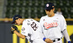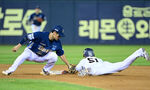 [OSEN=잠실, 지형준 기자] 12일 서울 잠실구장에서 ‘2025 신한 SOL Bank KBO리그’ 두산 베어스와 NC 다이노스의 경기가 열렸다.두산은 콜어빈, NC는 김녹원이 선발로 나섰다.7회말 1사 1루에서 두산 조수행이 NC 김주원에 태그아웃 당하
