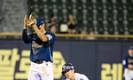 [OSEN=잠실, 지형준 기자] 12일 서울 잠실구장에서 ‘2025 신한 SOL Bank KBO리그’ 두산 베어스와 NC 다이노스의 경기가 열렸다.두산은 콜어빈, NC는 김녹원이 선발로 나섰다.7회말 1사 1루에서 두산 조수행이 2루 도루에 실패하며 아쉬