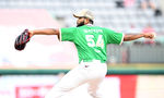 [OSEN=잠실, 최규한 기자] 14일 서울 잠실야구장에서 ‘2025 신한 SOL Bank KBO리그’ 두산 베어스와 NC 다이노스의 경기가 열렸다.홈팀 두산은 곽빈, 방문팀 NC는 라일리 톰슨을 선발로 내세웠다.1회초 두산 선발 곽빈이 힘차게 공을 뿌