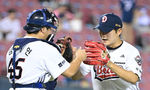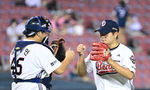 [OSEN=잠실, 최규한 기자] 14일 서울 잠실야구장에서 ‘2025 신한 SOL Bank KBO리그’ 두산 베어스와 NC 다이노스의 경기가 열렸다.이날 경기는 홈팀 두산이 접전 끝에 6-5 역전승을 거뒀다.경기를 마무리지은 두산 투수 김택연과 포수