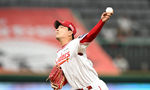 [OSEN=인천, 이대선 기자] 14일 오후 인천 SSG랜더스필드에서 2025 신한 SOL Bank KBO리그 SSG 랜더스와 키움 히어로즈의 경기가 열렸다.SSG는 문승원, 키움은 알칸타라를 선발 투수로 내세웠다.9회말 무사에서 키움 조영건이 역투하고 있