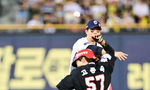 [OSEN=잠실, 박준형 기자] 15일 오후 서울 잠실구장에서 ‘2025 신한 SOL BANK KBO리그’ 두산 베어스와 KIA 타이거즈의 경기가 진행됐다.이날 두산은 잭로그를, KIA는 김도현을 선발투수로 내세웠다. 9회말 KIA 이범호 감독이 마운드에 올
