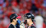 [OSEN=인천, 최규한 기자] 16일 인천 SSG랜더스필드에서 ‘2025 신한 SOL Bank KBO리그’ SSG 랜더스와 LG 트윈스의 경기가 열렸다.홈팀 SSG는 김건우, 방문팀 LG는 송승기를 선발로 내세웠다.5회말 무사 만루 상황 LG 선발 송승기와 포수 이