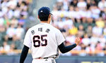 [OSEN=잠실, 지형준 기자] 16일 서울 잠실구장에서 ‘2025 신한 SOL Bank KBO리그’ 두산 베어스와 KIA 타이거즈의 경기가 열렸다.두산은 최승용, KIA는 이의리를 선발로 내세웠다.3회초 1사에서 두산 윤태호가 KIA 박민을 삼진 처리하며
