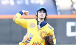 [OSEN=대전, 이대선 기자] 19일 오후 대전 한화생명볼파크에서 2025 신한 SOL Bank KBO리그 한화 이글스와 두산 베어스의 경기가 열렸다.한화는 와이스, 두산은 콜어빈을 선발로 내세웠다.경기에 앞서 닛몰캐쉬가 시구를 하고 있다. 2025