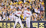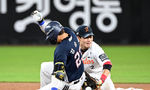 [OSEN=대전, 이대선 기자] 19일 오후 대전 한화생명볼파크에서 2025 신한 SOL Bank KBO리그 한화 이글스와 두산 베어스의 경기가 열렸다.한화는 와이스, 두산은 콜어빈을 선발로 내세웠다.4회말 무사 1사에서 한화 손아섭의 땅볼 때 런