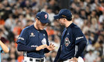 [OSEN=대전, 이대선 기자] 19일 오후 대전 한화생명볼파크에서 2025 신한 SOL Bank KBO리그 한화 이글스와 두산 베어스의 경기가 열렸다.한화는 와이스, 두산은 콜어빈을 선발로 내세웠다.8회말 2사 만루에서 마운드를 방문한 두산 조