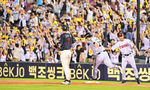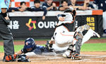 [OSEN=대전, 이대선 기자] 19일 오후 대전 한화생명볼파크에서 2025 신한 SOL Bank KBO리그 한화 이글스와 두산 베어스의 경기가 열렸다.한화는 와이스, 두산은 콜어빈을 선발로 내세웠다.9회초 1사 3루에서 두산 3루주자 이유찬이 정수