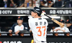 [OSEN=대전, 이대선 기자] 20일 오후 대전 한화생명볼파크에서 2025 신한 SOL Bank KBO리그 한화 이글스와 두산 베어스의 경기가 열렸다.한화는 조동욱, 두산은 곽빈을 선발로 내세웠다.6회말 2사 1,2루에서 한화 김인환이 적시타를 치고