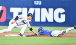 [OSEN=잠실, 최규한 기자] 20일 서울 잠실야구장에서 ‘2025 신한 SOL Bank KBO리그’ LG 트윈스와 롯데 자이언츠의 경기가 열렸다.홈팀 LG는 손주영, 방문팀 롯데는 나균안을 선발로 내세웠다.2회초 2사 1, 2루 상황 롯데 황성빈이 내야