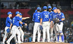 [OSEN=창원, 이석우 기자] 20일 창원NC파크에서 2025 신한 SOL 뱅크 KBO 리그 NC 다이노스와 삼성 라이온즈의 경기가 열렸다. 홈팀 NC는 목지훈이, 방문팀 삼성은 원태인이 선발 출전했다. 삼성 라이온즈 선수들이 NC 다이노스에 4-3으로