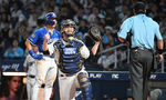 [OSEN=대전, 이대선 기자] 20일 오후 대전 한화생명볼파크에서 2025 신한 SOL Bank KBO리그 한화 이글스와 두산 베어스의 경기가 열렸다.한화는 조동욱, 두산은 곽빈을 선발로 내세웠다.8회초 1사 2,3루에서 두산 3루주자 양의지가 박준