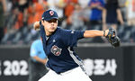 [OSEN=창원, 이석우 기자] 20일 창원NC파크에서 2025 신한 SOL 뱅크 KBO 리그 NC 다이노스와 삼성 라이온즈의 경기가 열렸다. 홈팀 NC는 목지훈이, 방문팀 삼성은 원태인이 선발 출전했다. NC 다이노스 김진호가 역투하고 있다. 2025.08.20 /