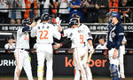 [OSEN=창원, 이석우 기자] 20일 창원NC파크에서 2025 신한 SOL 뱅크 KBO 리그 NC 다이노스와 삼성 라이온즈의 경기가 열렸다. 홈팀 NC는 목지훈이, 방문팀 삼성은 원태인이 선발 출전했다. NC 다이노스 김주원이 8회말 좌월 솔로 홈런을
