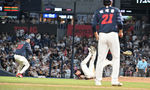 [OSEN=창원, 이석우 기자] 22일 창원NC파크에서 2025 신한 SOL 뱅크 KBO 리그 NC 다이노스와 롯데 자이언츠의 경기가 열렸다. 홈팀 NC는 신민혁이, 방문팀 롯데는 박세웅이 선발 출전했다. 롯데 자이언츠 박찬형이 3회말 2사 만루 NC 다이