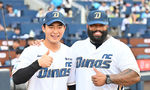 [OSEN=창원, 이석우 기자] 22일 창원NC파크에서 2025 신한 SOL 뱅크 KBO 리그 NC 다이노스와 롯데 자이언츠의 경기가 열렸다. 홈팀 NC는 신민혁이, 방문팀 롯데는 박세웅이 선발 출전했다. 전 NC 다이노스 테임즈가 김휘집과 기념촬영을