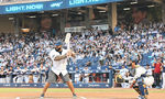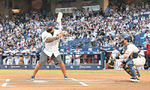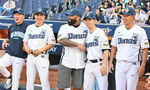 [OSEN=창원, 이석우 기자] 22일 창원NC파크에서 2025 신한 SOL 뱅크 KBO 리그 NC 다이노스와 롯데 자이언츠의 경기가 열렸다. 홈팀 NC는 신민혁이, 방문팀 롯데는 박세웅이 선발 출전했다. 전 NC 다이노스 테임즈가 시타를 하고 있다. 2025