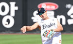 [OSEN=대전, 이대선 기자] 22일 오후 대전 한화생명볼파크에서 2025 신한 SOL Bank KBO리그 한화 이글스와 SSG 랜더스의 경기가 열렸다.한화는 폰세, SSG은 최민준을 선발로 내세웠다.경기에 앞서 한화 노시환이 수비 훈련을 하고 있다. 20