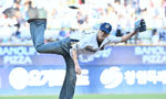 [OSEN=박준형 기자] 23일 오후 서울 잠실구장에서 ‘2025 신한 SOL BANK KBO리그’ 두산 베어스와 KT 위즈의 경기가 진행됐다.이날 경기에서 두산은 제환유를, KT는 패트릭을 선발투수로 내세웠다.1회말 무사 1루 두산 이유찬의 내야땅볼