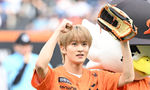 [OSEN=대전, 이대선 기자] 23일 오후 대전 한화생명볼파크에서 2025 신한 SOL Bank KBO리그 한화 이글스와 SSG 랜더스의 경기가 열렸다.한화는 황준서, SSG은 화이트를 선발로 내세웠다.경기에 앞서 그룹 NCT 마크가 시구를 하고 있다. 2025.