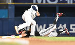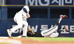 [OSEN=잠실, 조은정 기자]27일 오후 서울 잠실구장에서 ‘2025 신한 SOL Bank KBO리그’ 두산 베어스와 삼성 라이온즈의 경기가 열렸다.두산은 윤태호, 삼성은 가라비토를 선발로 내세웠다.4회말 1사 1,2루 삼성 양우현이 두산 김기연 땅