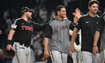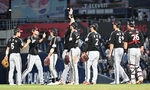 [OSEN=창원, 이석우 기자] 27일 창원NC파크에서 2025 신한 SOL 뱅크 KBO 리그 NC 다이노스와 LG 트윈스의 경기가 열렸다. 홈팀 NC는 신영우가, 방문팀 LG는 치리노스가 선발 출전했다. LG 트윈스 선수들이 NC 다이노스에 10-1로 승리한 후 기