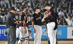 [OSEN=부산, 이석우 기자] 28일 부산 사직야구장에서 2025 신한 SOL 뱅크 KBO 리그 롯데 자이언츠와 KT 위즈의 경기가 열렸다. 홈팀 롯데는 감보아가, 방문팀 KT는 헤이수스가 선발 출전했다.KT 위즈 헤이수스가 6회말 1사 1루 심판의 보