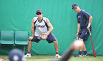 [OSEN=부산, 이석우 기자] 28일 부산 사직야구장에서 2025 신한 SOL 뱅크 KBO 리그 롯데 자이언츠와 KT 위즈의 경기가 열린다. 홈팀 롯데는 감보아가, 방문팀 KT는 헤이수스가 선발 출전한다.롯데 자이언츠 김현욱 코치가 1군으로 올라