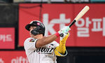 [OSEN=수원, 조은정 기자]3일 오후 수원KT위즈파크에서 ‘2025 신한 SOL BANK KBO리그’ KT 위즈와 롯데 자이언츠의 경기가 진행됐다.이날 경기에 KT는 헤이수스, 롯데는 감보아를 선발투수로 내세웠다. 6회말 2사 2루 KT 안현민이 1타점 2