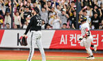 [OSEN=수원, 박준형 기자] 4일 오후 수원 KT 위즈 파크에서 ‘2025 신한 SOL BANK KBO리그’ KT 위즈와 LG 트윈스의 경기가 진행됐다. 이날 경기 KT는 문용익을, LG는 송승기를 선발투수로 내세웠다.6회말 무사 1,2루 KT 황재균의 내야땅볼때