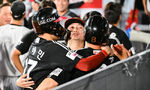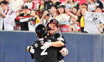 [OSEN=수원, 박준형 기자] 4일 오후 수원 KT 위즈 파크에서 ‘2025 신한 SOL BANK KBO리그’ KT 위즈와 LG 트윈스의 경기가 진행됐다.이날 경기 KT는 문용익을, LG는 송승기를 선발투수로 내세웠다.8회초 1사 만루 LG 문성주가 역전 만