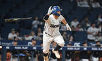[OSEN=창원, 이석우 기자] 5일 창원NC파크에서 2025 신한 SOL 뱅크 KBO 리그 NC 다이노스와 두산 베어스의 경기가 열렸다. 홈팀 NC는 로건이, 방문팀 두산은 잭로그가 선발 출전했다. NC 다이노스 오영수가 8회말 1사 2루 우익수 왼쪽 동점