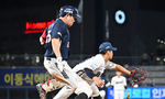 [OSEN=창원, 이석우 기자] 5일 창원NC파크에서 2025 신한 SOL 뱅크 KBO 리그 NC 다이노스와 두산 베어스의 경기가 열렸다. 홈팀 NC는 로건이, 방문팀 두산은 잭로그가 선발 출전했다. 두산 베어스 오명진이 연장 10회초 1사 2,3루 NC 다이