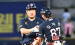 [OSEN=창원, 이석우 기자] 5일 창원NC파크에서 2025 신한 SOL 뱅크 KBO 리그 NC 다이노스와 두산 베어스의 경기가 열렸다. 홈팀 NC는 로건이, 방문팀 두산은 잭로그가 선발 출전했다. 두산 베어스 김인태가 2회초 좌익수 오른쪽 1타점 2