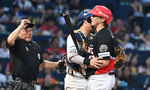 [OSEN=창원, 이석우 기자] 6일 창원NC파크에서 2025 신한 SOL 뱅크 KBO 리그 NC 다이노스와 KIA 타이거즈의 경기가 열렸다. 홈팀 NC는 라일리가, 방문팀 KIA는 올러가 선발 출전했다. NC 다이노스 박세혁이 5회초 1사 2,3루 등에 투구를 맞은