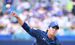 [OSEN=대구, 최규한 기자] 7일 대구삼성라이온즈파크에서 ‘2025 신한 SOL Bank KBO리그’ 삼성 라이온즈와 한화 이글스의 경기가 열렸다.홈팀 삼성은 원태인, 방문팀 한화는 황준서를 선발로 내세웠다.1회말 한화 선발 황준서가 힘차