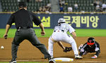 [OSEN=잠실, 조은정 기자]10일 오후 서울 잠실구장에서 ‘2025 신한 SOL Bank KBO리그’ 두산 베어스와 LG 트윈스의 경기가 열렸다.홈팀 두산은 콜어빈, 방문팀 LG는 손주영을 선발로 내세웠다.5회초 무사 2루에서 두산 3루수 오명진이 LG